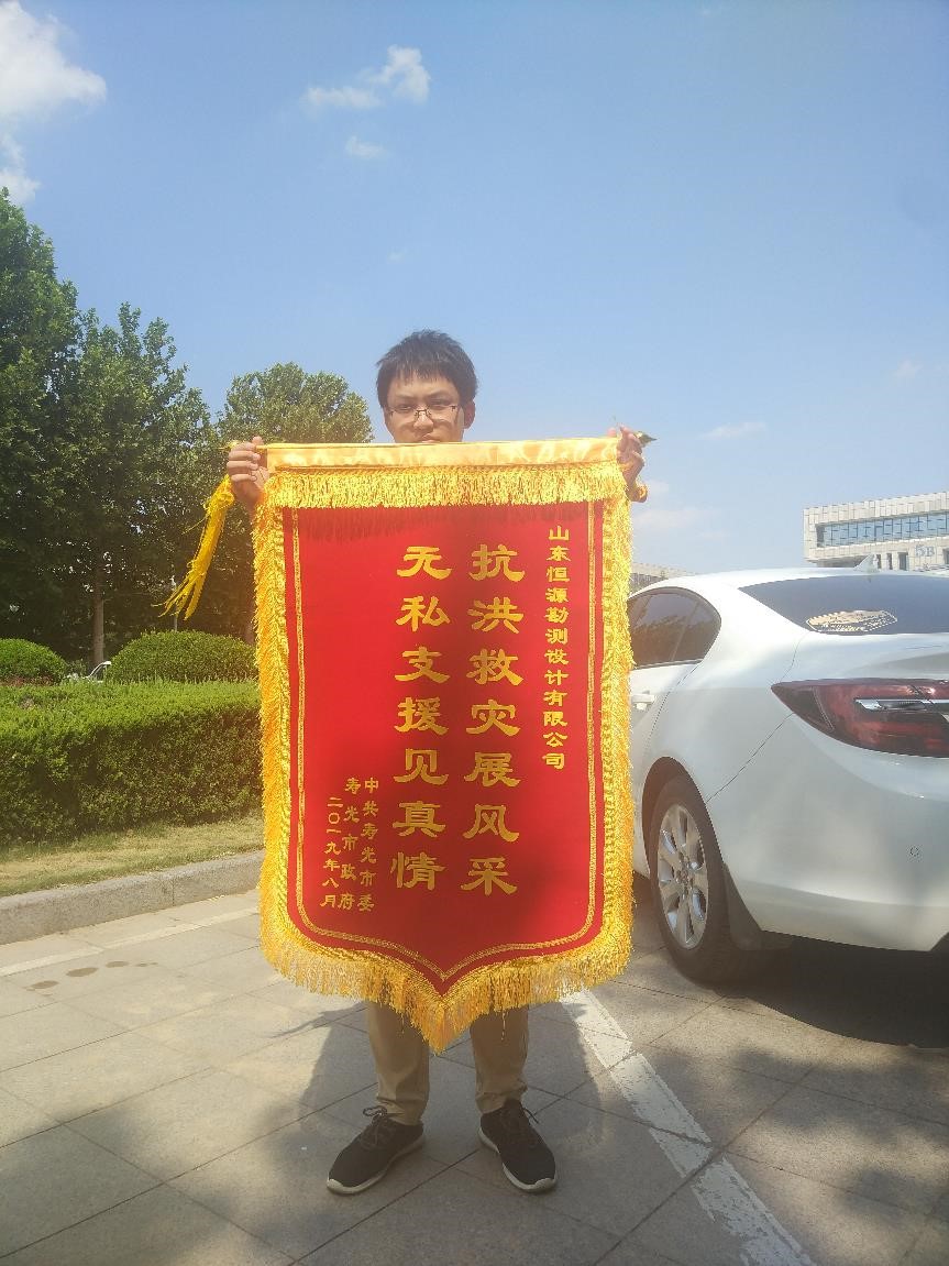 在寿光弥河分流西坝清水泊农场三分场决口抢险行动中,我院积极参与,得到中共寿光市委、寿光市政府肯定,获赠锦旗一面。